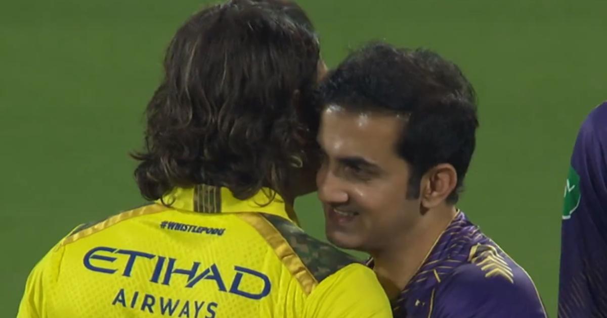 Fans were treated to a heartwarming display of sportsmanship as former team-mates M S Dhoni and Gautam Gambhir shared a warm hug after the match.