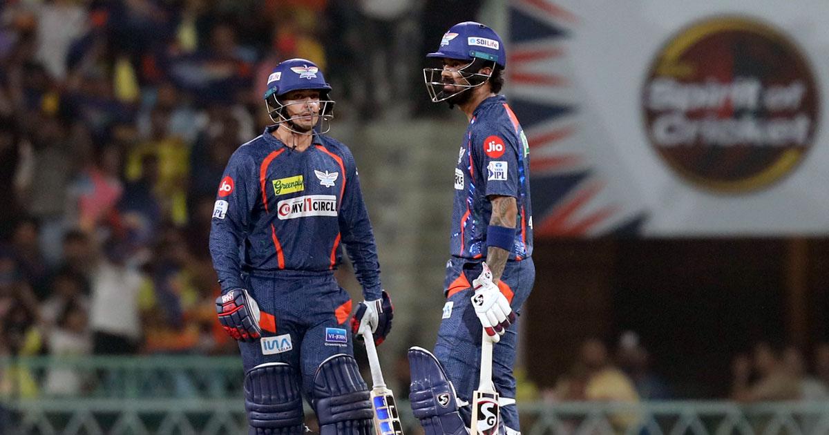 De Kock too smashed Tushar Deshpande for a maximum over deep midwicket as LSG race to 54 for no loss in six overs in the Powerplay.