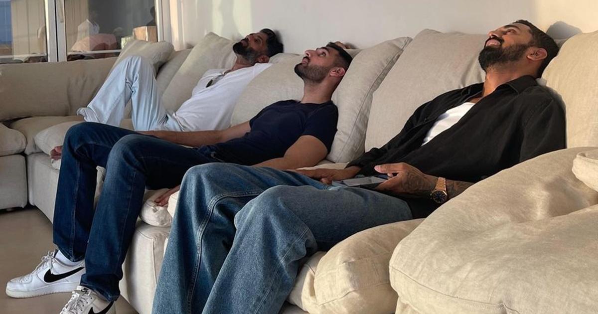 Shetty shared a casual photo on Instagram featuring himself, son Ahan Shetty and son-in-law Rahul relaxing together.