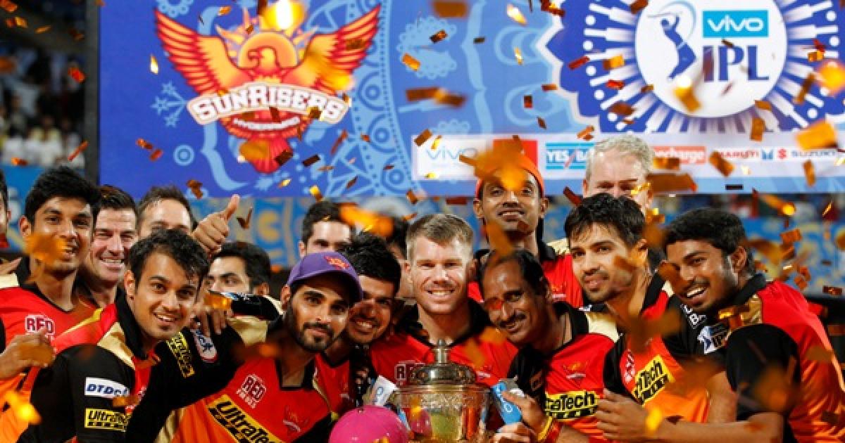 IMAGE: Sunrisers Hyderabad players celebrate their IPL triumph in 2016. Photograph: BCCI