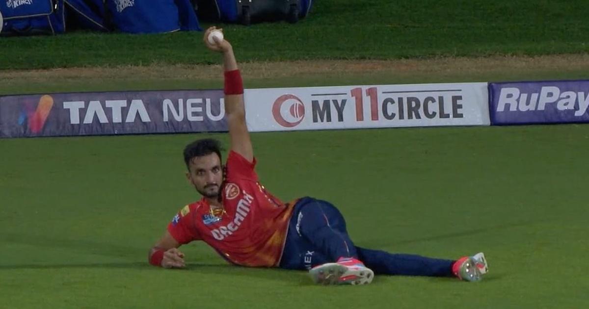 Harshal Patel, playing for the Punjab Kings, took a great catch and decided to celebrate by mimicking Chahal's pose in a playful way.
