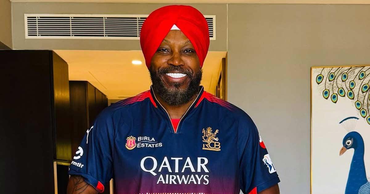 Gayle, who has played for both teams, wore a red turban to show support for PBKS, while donning an RCB jersey and customised shoes of the Bengaluru-based team.