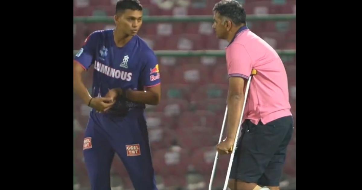 Dravid's presence, even on crutches, sends a powerful message to the Rajasthan Royals squad.