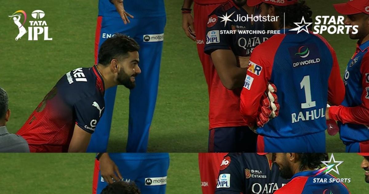 After the match, as players shook hands, Kohli walked up to Rahul and cheekily recreated Rahul’s famous celebration — pointing to the ground and thumping his chest. Rahul immediately pointed towards the ‘Virat Kohli Pavilion’ at the stadium, both players laughed, and any lingering tension between the two evaporated in a warm hug.