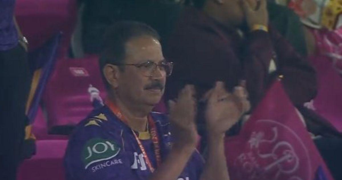 IMAGE: Was KKR CEO Venky Mysore celebrating Nitish Rana's dismissal? Photograph: Kind courtesy KKRXtra/X