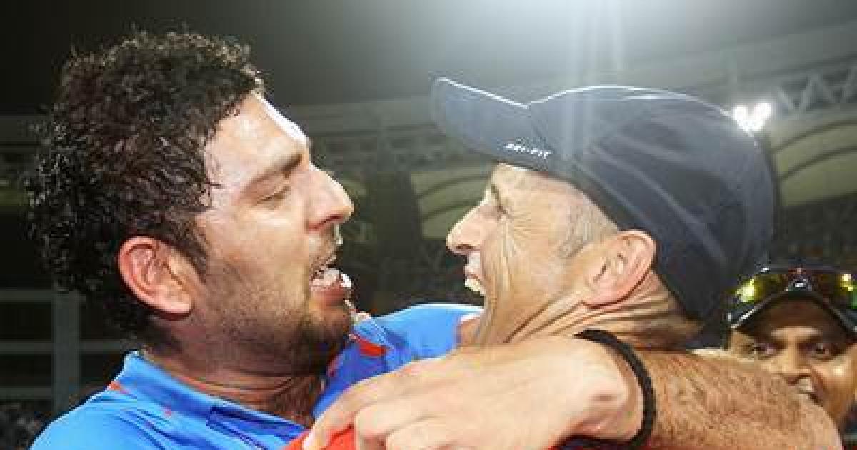 Image: Yuvraj Singh and former India coach Gary Kirsten, now in charge of Delhi Daredevils, after the World Cup triumph in 2011.