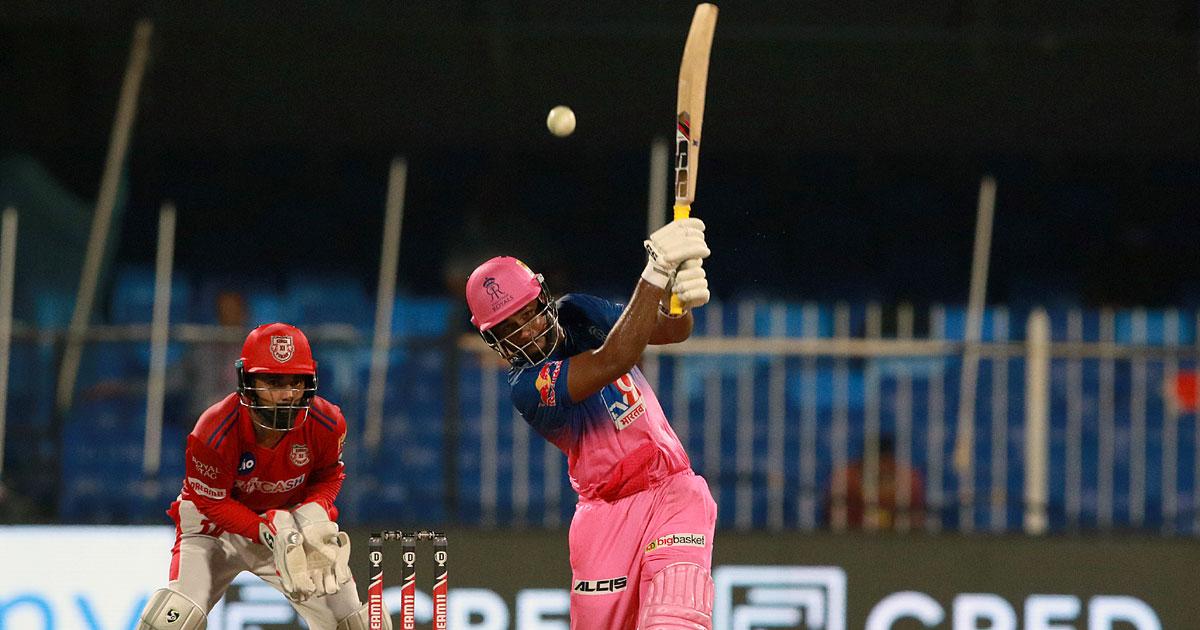 IMAGE: Sanju Samson did the star turn for Rajasthan Royals, scoring 85 off 42 balls in Sunday’s IPL match against Kings XI Punjab, in Sharjah. Photograph: BCCI/IPL