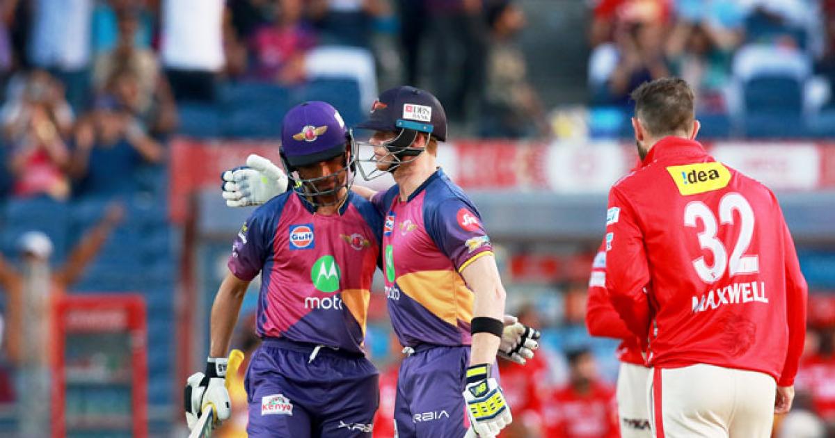 Rising Pune Supergiant thrashed Kings XI Punjab by nine wickets to storm into the play-offs of the Indian Premier League, in Pune, on Sunday.
