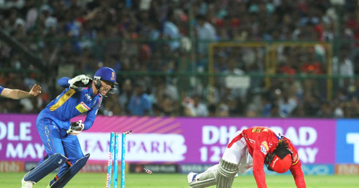 The dream start was provided by Krishnappa Gowtham as the off-spinner sent back the dangerous Chris Gayle with the first ball of the third over. The spinner slid one down the leg side and Gayle charged down the wicket, only to be excellently stumped by Buttler.