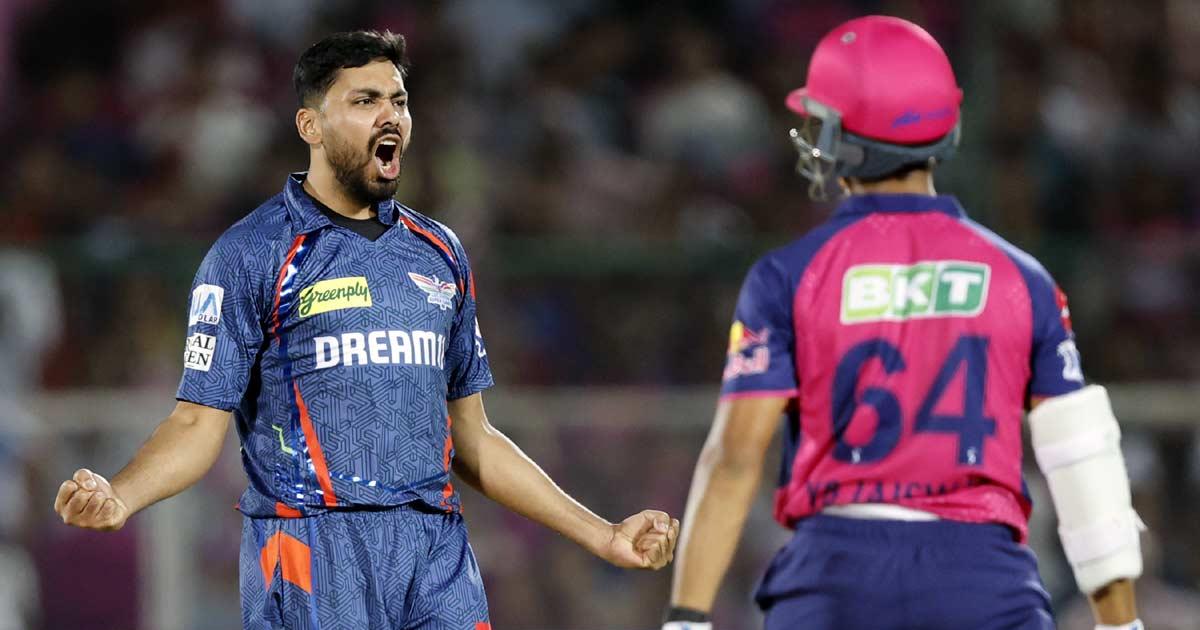 He bowled Jaiswal with a brilliant yorker off the first ball, and then had Parag leg before wicket off the last ball of the over as he conceded just five runs and picked up two key wickets in the 18th over to turn the tide in LSG's favour.