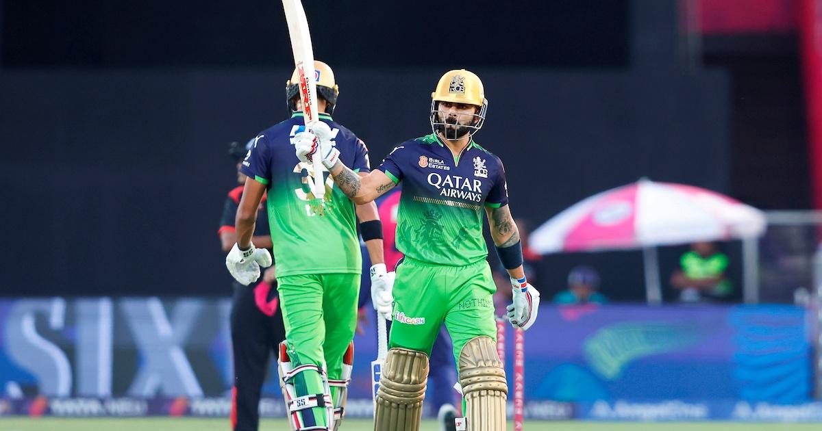 He too had an early life --a miscue off Sandeep's slower ball was put down by Riyan Parag at mid-off, a straightforward chance. But the RCB's iconic batter regrouped quickly and settled into his anchor role.