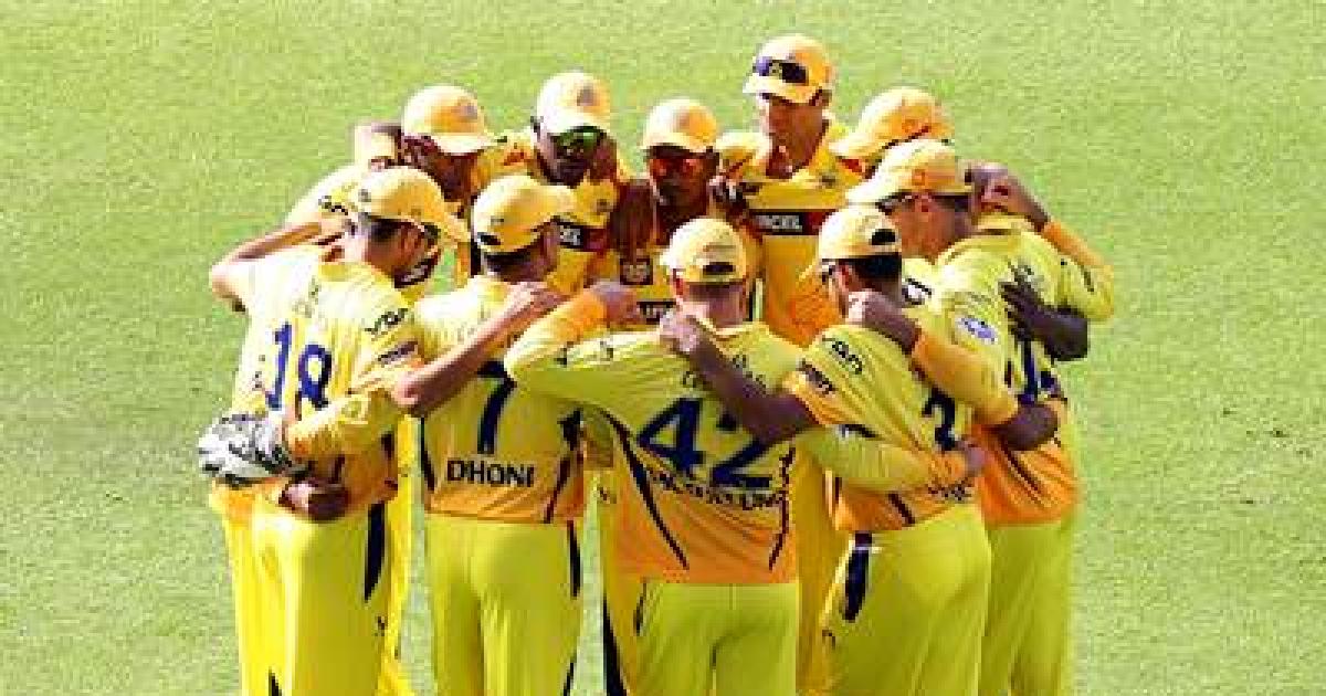 Image: Chennai Super Kings players in a huddle before an IPL match