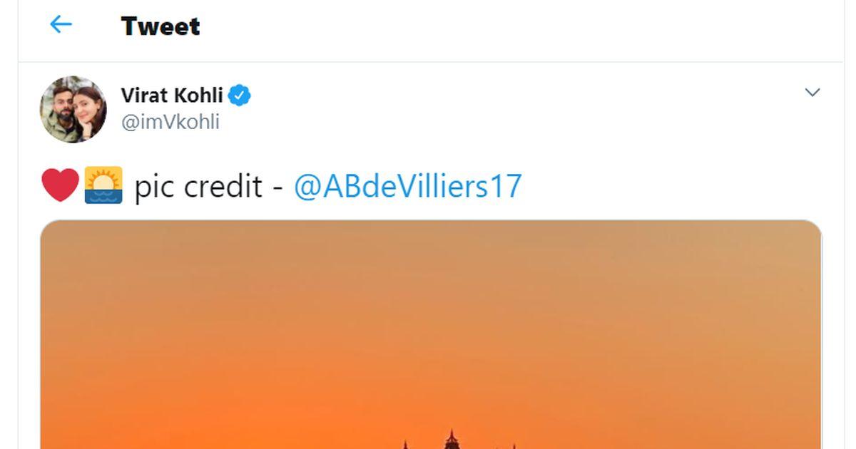 Kohli credits the picture to an RCB team-mate, one Abraham Benjamin de Villiers.