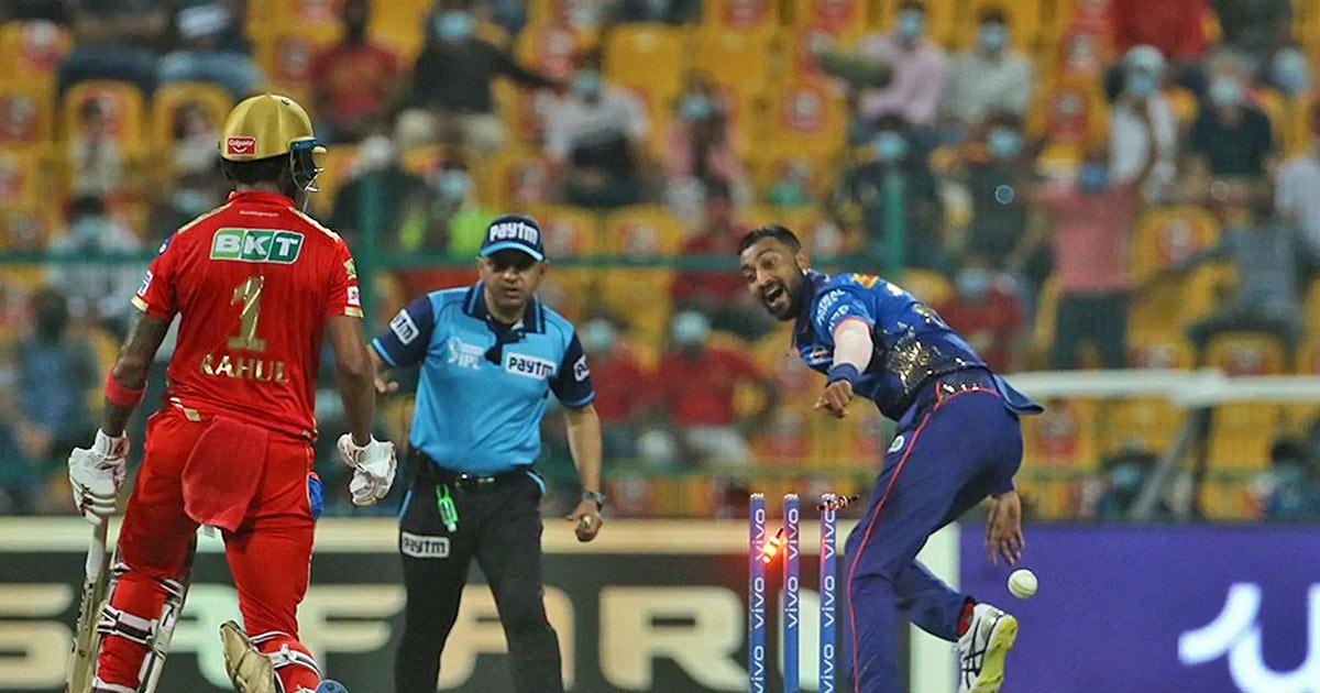 Krunal Pandya had removed the bails with K L Rahul out of the crease. The left-arm spinner had collected the ball after Chris Gayle hit it straight to Rahul at the non-striker's end causing the Punjab Kings skipper to stumble out of the crease.