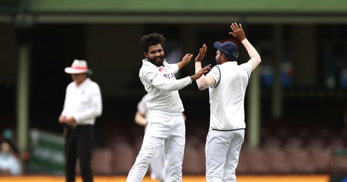 IMAGE: India all-rounder Ravindra Jadeja celebrates after dismissing Australia's Marnus Labuschagne during Day 2 of the third Test, at the Sydney Cricket Ground, on Friday. Photograph: Ryan Pierse/Getty Images