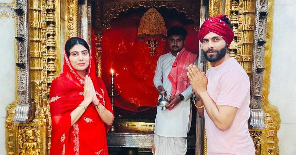 Ahead of his departure for the West Indies, Ravindra Jadeja and his MLA wife Rivaba visited the Ashapura temple in Mata no Madh village in Gujarat's Kutch district.