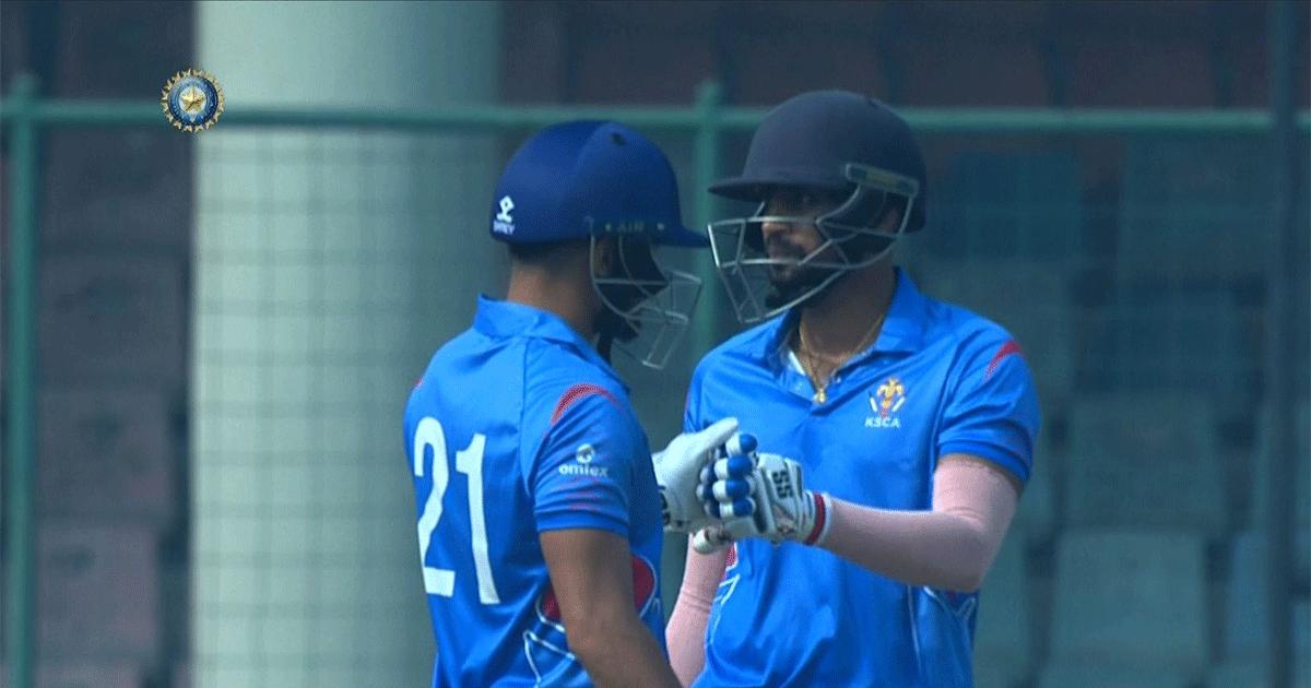 Karnataka openers Kadam and skipper Manish Pandey (54 off 42 balls) gave the side an aggressive start as they toyed with the Vidarbha attack.