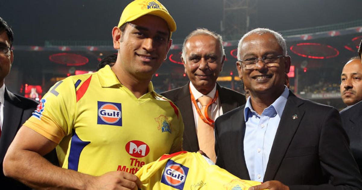 Dhoni, who has served as India captain, was the first to present CSK's yellow jersey to Solih before current India skipper Kohli presented RCB's red-and-black outfit to the visiting dignitary at the Chinnaswamy Stadium.