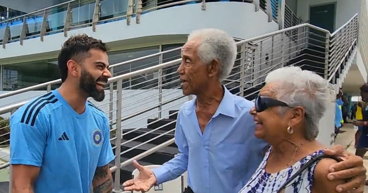 A video has surfaced capturing that special moment when Virat Kohli met Sir Gary. The footage shows Kohli warmly shaking hands with Sobers.
