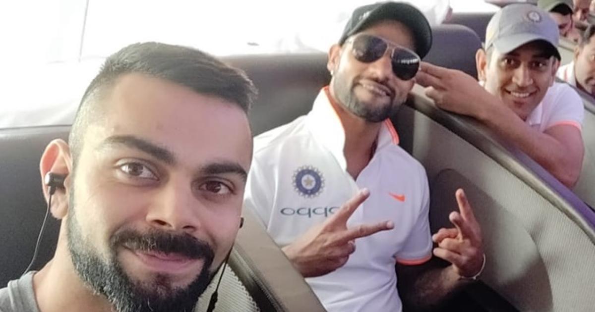 IMAGE: Virat Kohli with Shikhar Dhawan and Mahendra Singh Dhoni. Photograph: Virat Kohli/Twitter