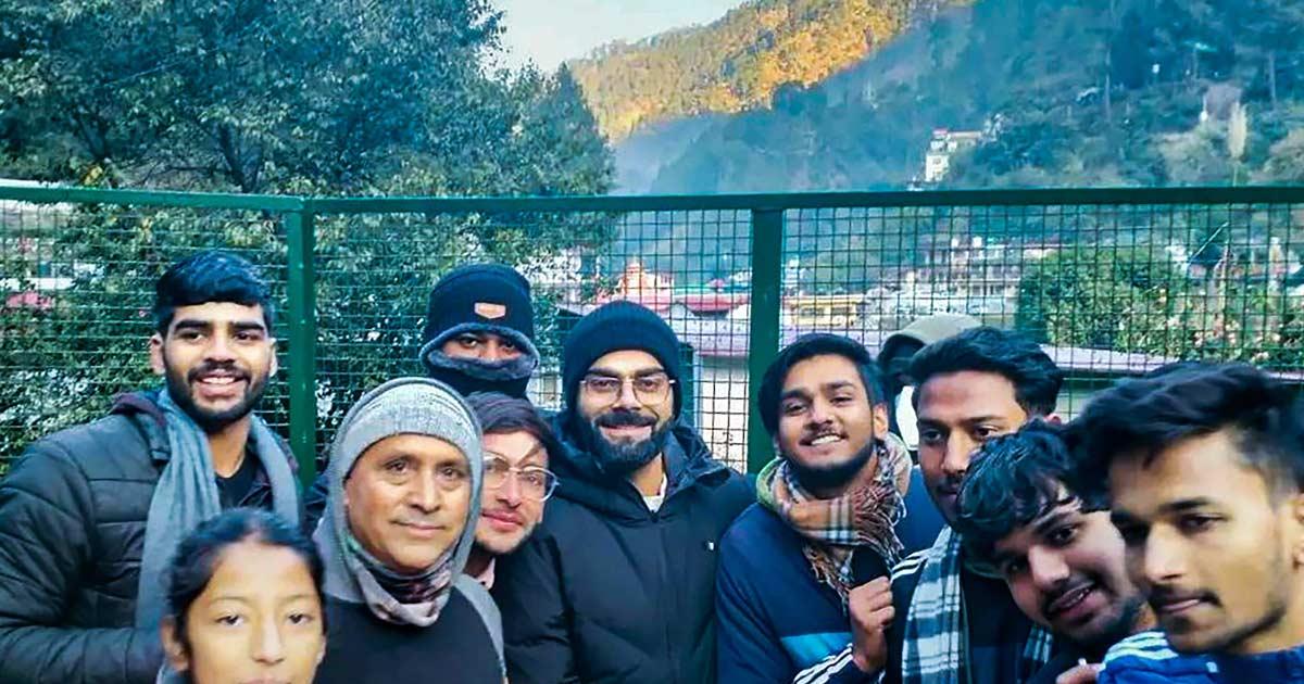 IMAGE: Virat Kohli with fans during a visit to the Kainchi Dham in Nainital, November 17, 2022. Photograph: PTI