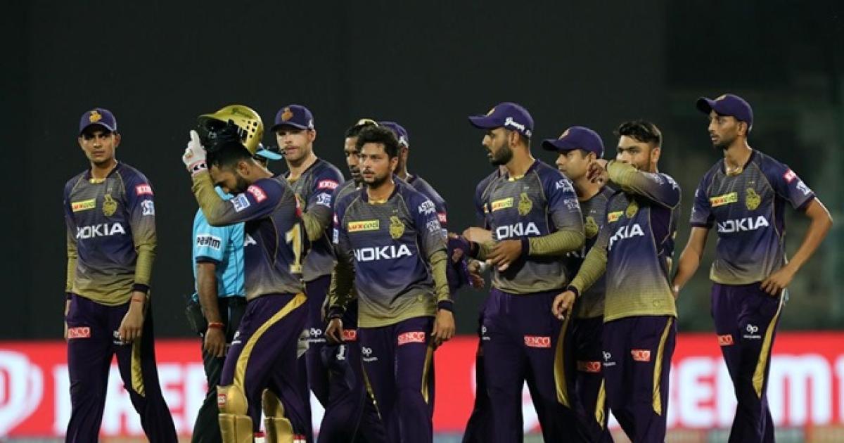 IMAGE: Kolkata Knight Riders players celebrate the fall of a wicket. Photograph: BCCI