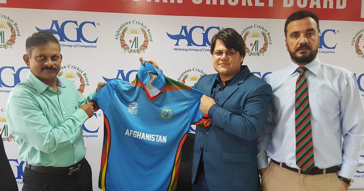 IMAGE: Lalchand Rajput (left) poses with the Afghanistan jersey. Photograph: Twitter.