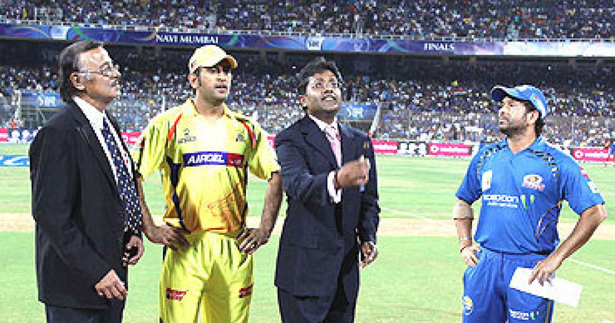 Image: Match referee Venkat Raghavan (left), M S Dhoni (second from left), and Sachin Tendulkar (right) watch as IPL Commissioner Lalit Modi tosses the coin during the IPL in 2010. (Image used for representational purposes)