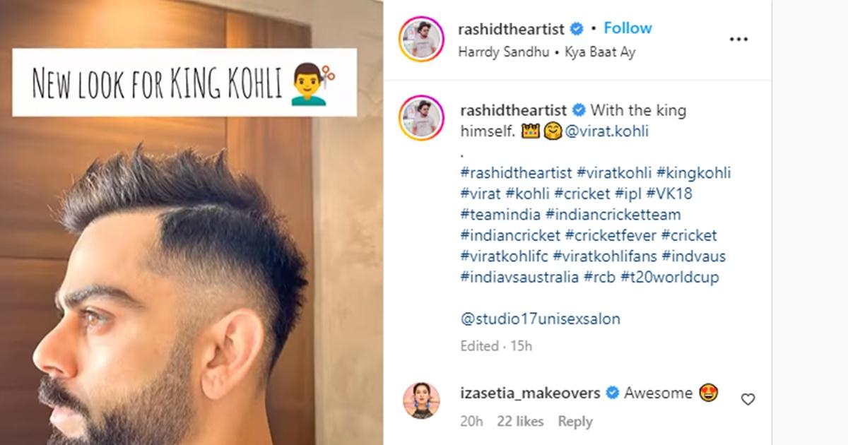Kohli revealed his new hairstyle on Saturday after the photographs were originally shared by celebrity hairstylist Rashid Salmani on Instagram with a caption, 'New look for King Kohli.'