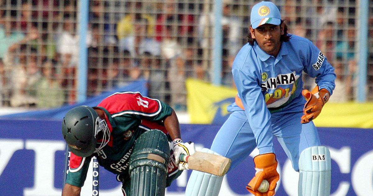IMAGE: Mahendra Singh Dhoni's first ever game for India was the first ODI against Bangladesh in Chattogram on December 23, 2004.