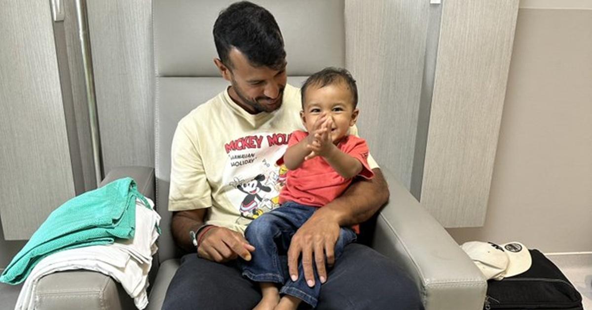 Accompanied by son Aayansh, he shared, 'With my happy pill, recovery is faster.'