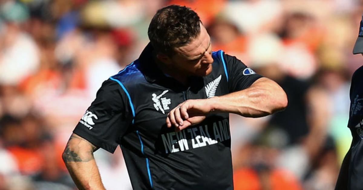 McCullum was hit by Australia fast bowler Mitchell Johnson high on his left forearm and received treatment on the area, which immediately swelled up.