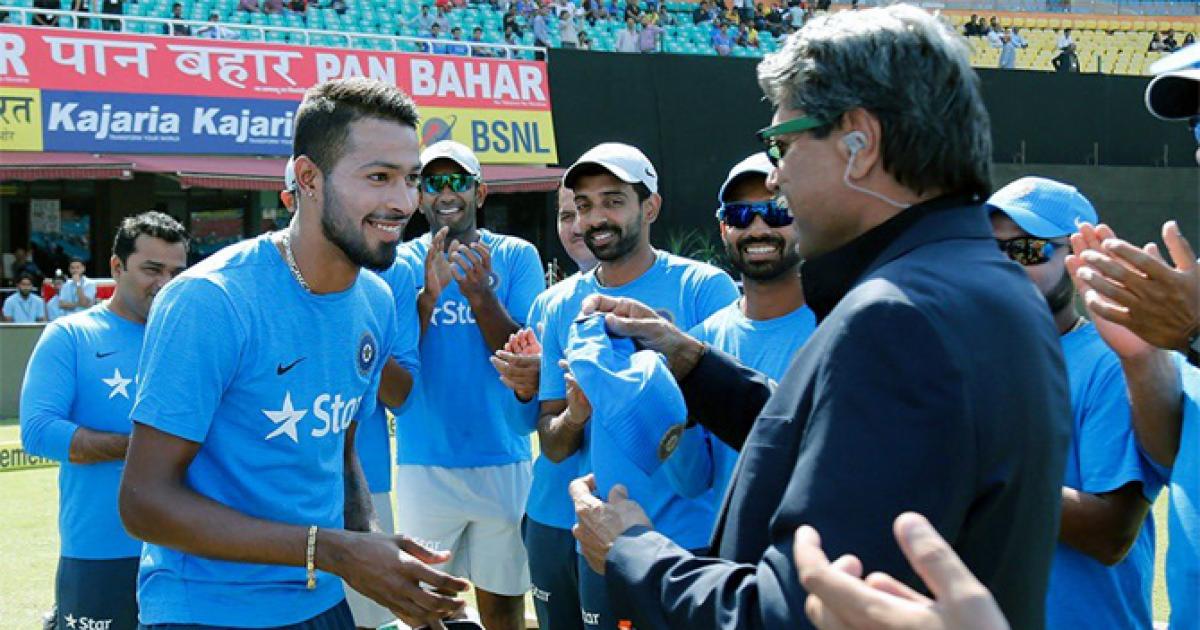 India all-rounder Hardik Pandya on Wednesday shared a throwback picture and recalled the moment when he was handed the Indian cap by former India skipper Kapil Dev.