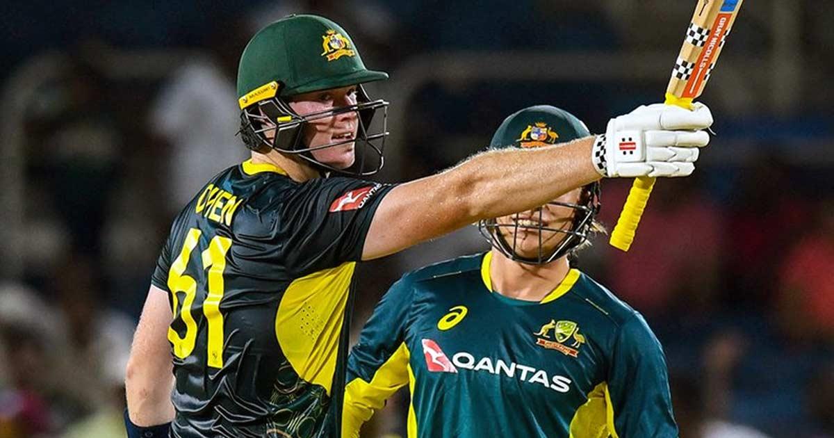 Australia 190/7 in 18.5 ovs (Mitchell Owen 50 from 27 balls, Cameron Green 51 from 26 balls; Gudakesh Motie 2/29, Jason Holder 2/32).
