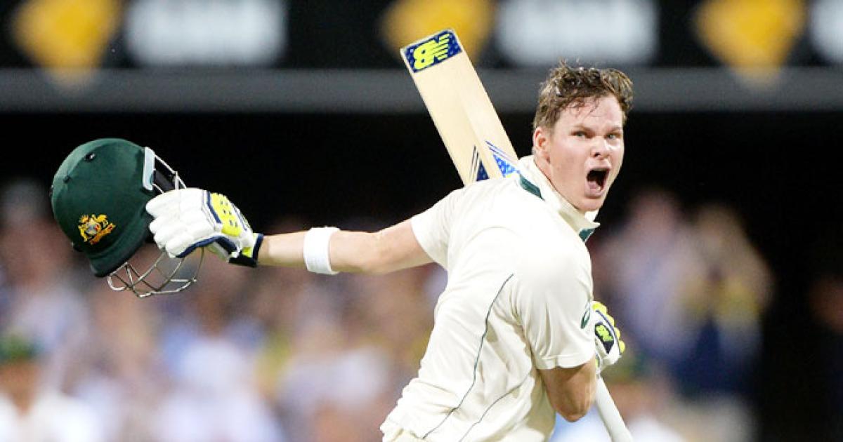Leaping into the air and ripping off his helmet, Smith brandished his bat with relish as the Gabba crowd roared.