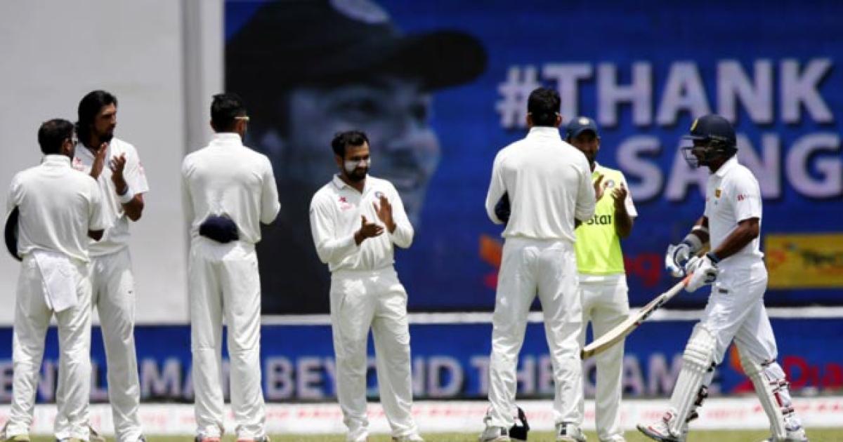 The Indians soon combined again to dismiss Sangakkara, who got a standing ovation on his way back to the pavilion while his opponents clapped.