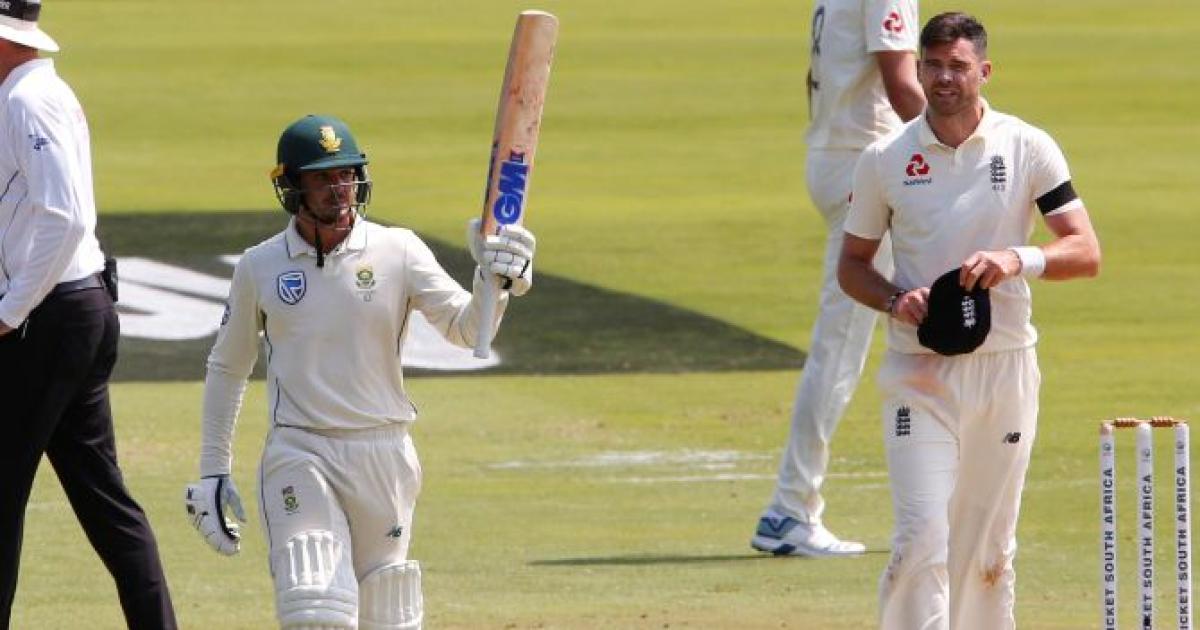 England took a wicket with the opening delivery of the four-Test series and had their hosts teetering on 111-5 after lunch but De Kock’s belligerent innings brought South Africa back into the match.