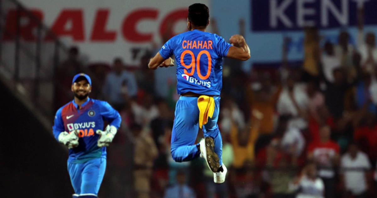 Chahar (6 for 7 in 3.2 overs), who registered best figures in a T20 match besides becoming the first Indian to take a hat-trick in the shortest format, and fellow-pacer Shivam Dube (3 for 30) shared nine wickets between themselves to register India's first T20 series win at home this season.