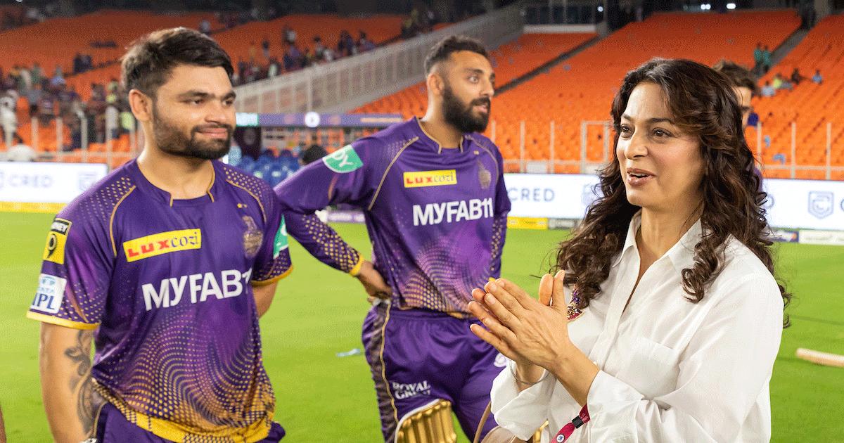 The 25-year-old, who hit fives sixes to take KKR to a three-wicket win, was the toast of the evening with franchise co-owner Juhi Chawla gushing with joy!