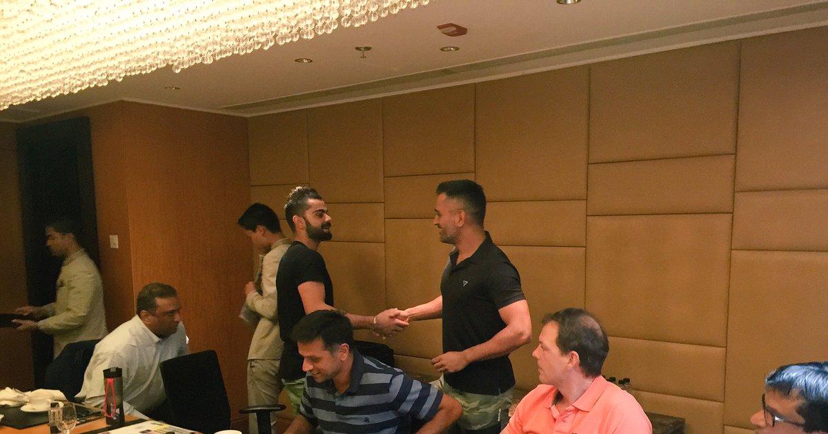 India's Test skipper Virat Kohli and his limited-overs' counterpart Mahendra Singh Dhoni had a special meeting with head coach Anil Kumble and Under-19 coach Rahul Dravid in Bengaluru on Sunday.