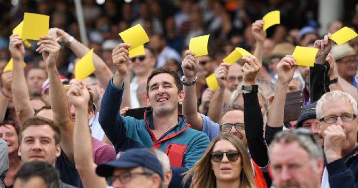 Warner got leg-before off Stuart Broad for just two runs. The wicket triggered the prepared spectators who stood up and waved sandpapers at Warner as he walked off the field. England Cricket shared the video of Warner's dismissal on Twitter wherein the crowd can be seen waving sandpapers at him.