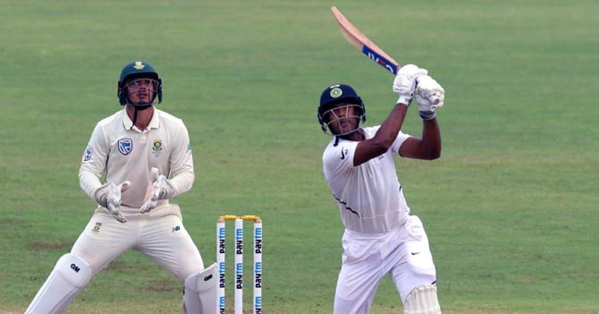 He stepped out to hit spinner Keshav Maharaj for two successive sixes to reach 99 and then guided Philander to third man for four to complete his century. Agarwal hit 16 fours and two sixes in his 195-ball innings.