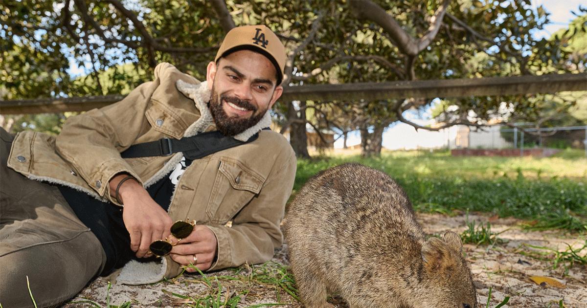IMAGE: Virat Kohli makes friends with a quokka, an indigenous animal of the Australian wild. Photographs: BCCI/Twitter