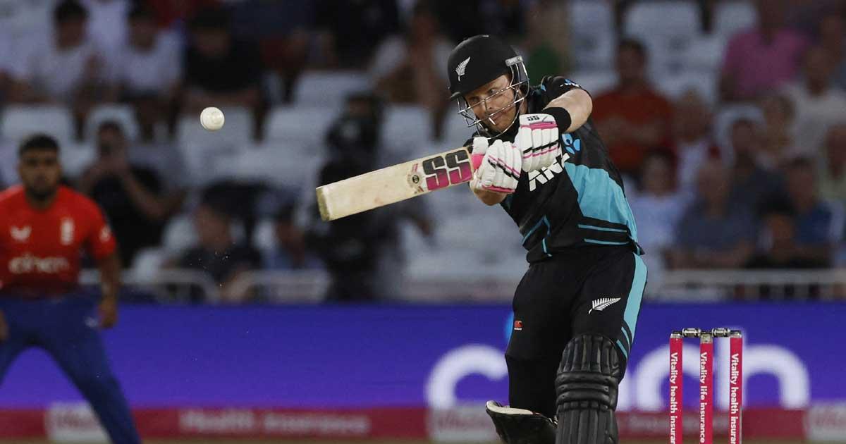 Curran (5) was caught by Finn Allen off Rachin Ravindra and England were 150-6, with Ahmed (11) run out in the last over on his home debut and Liam Livingston (26) caught on the final ball.