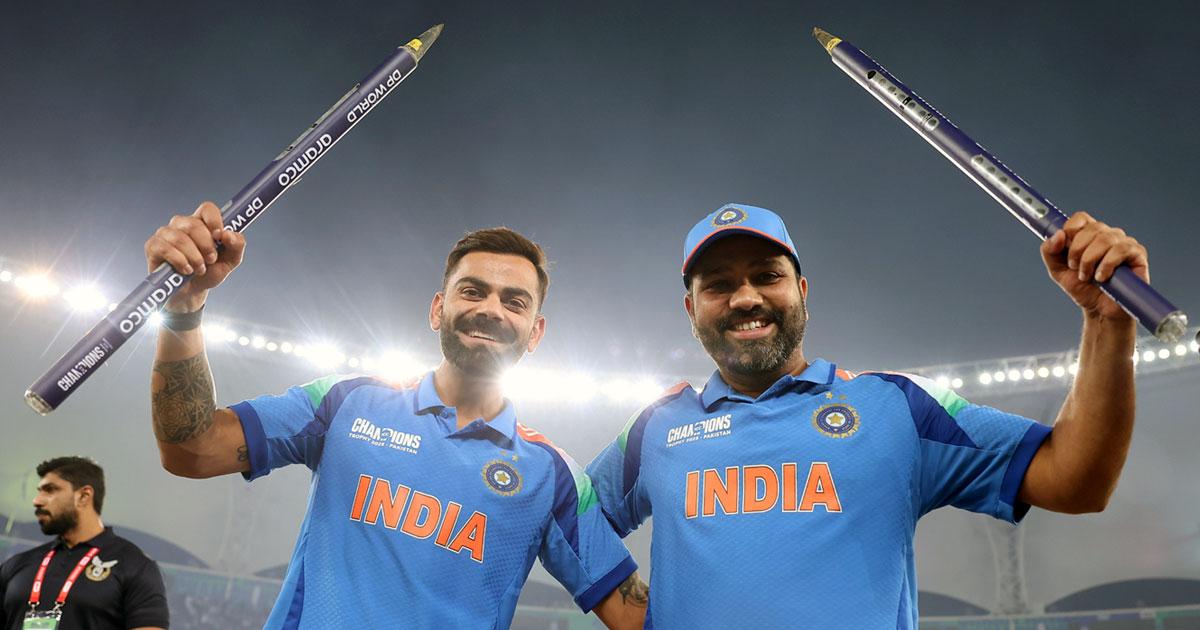 IMAGE: Rohit Sharma celebrates with Virat Kohli after winning the ICC Champions Trophy final in Dubai on Sunday. Photograph: BCCI/X
