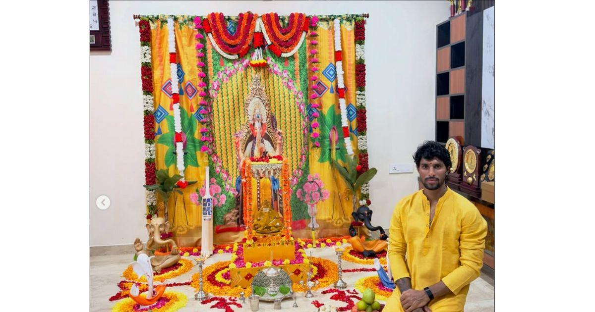 Indian cricketer Tilak Varma celebrated Ganesh Chaturthi with his family at his residence in Mumbai on Wednesday.