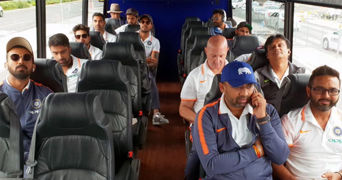 The Indian team was welcomed by the group of travelling Indian cricket fans -- the Bharat Army -- on their arrival in Adelaide.