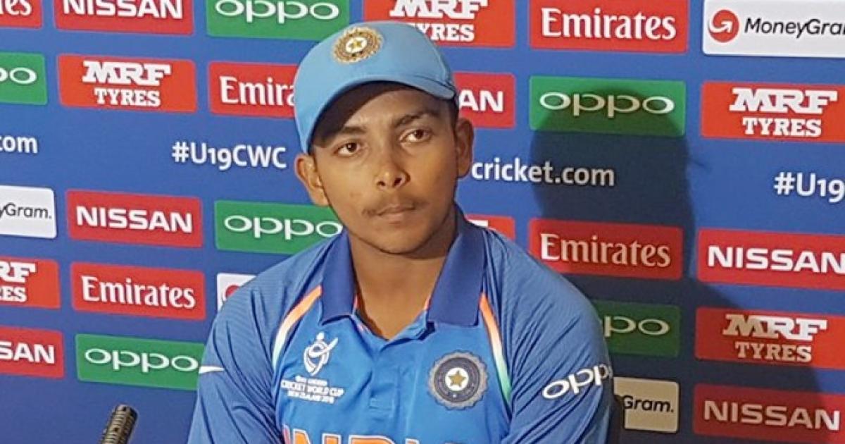 IMAGE: Prithvi Shaw. Photograph: Cricket World Cup/ICC/Twitter