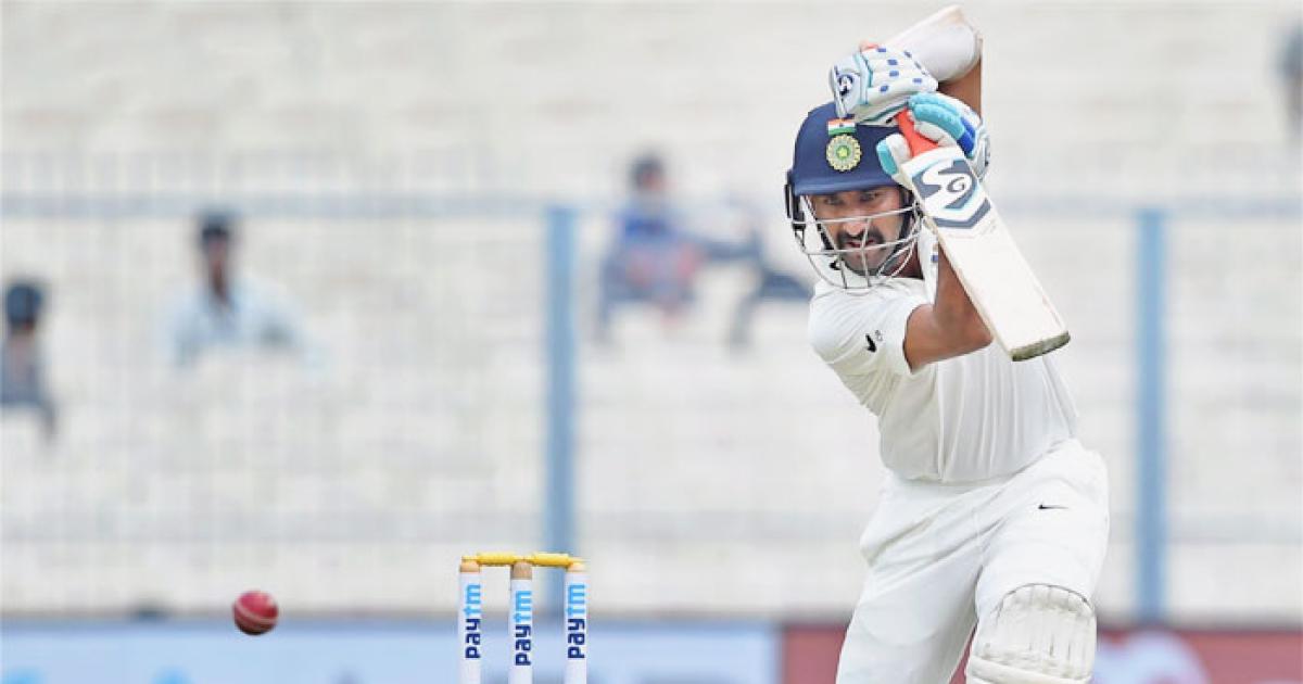 Right-handed batsman Cheteshwar Pujara added yet another feather on his cap as he became the third Indian cricketer to bat on all five days of a Test match, during the opening match against Sri Lanka at the EdenGardens in Kolkata on Monday.