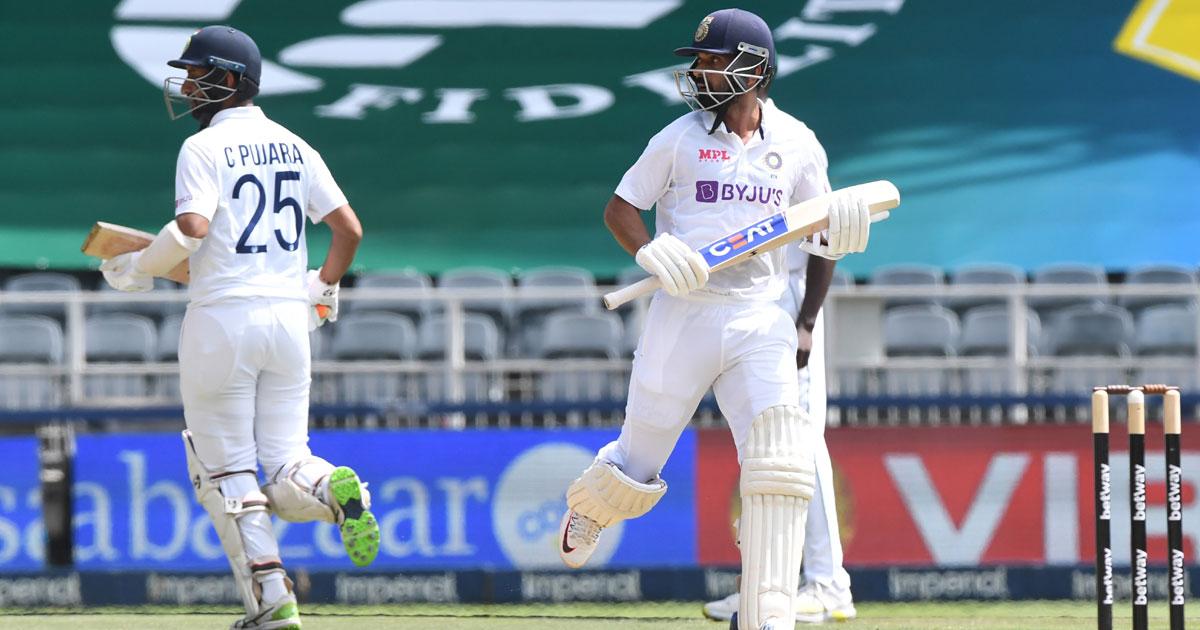 IMAGE: Ajinkya Rahabe and Cheteshwar Pujara made low scores in their respective Ranji Trophy matches on Thursday. Photograph: Sydney Seshibedi/Gallo Images/Getty Images